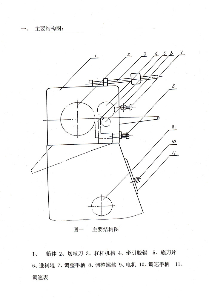 5.調(diào)整螺絲(8)用來調(diào)整底刀片(5)與切粒刀(2)的間隙(在0.06~0.12范圍內(nèi)),共有四個(gè)調(diào)整螺絲,其中中間兩個(gè)往外拉,兩邊兩個(gè)往里推。